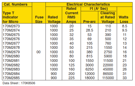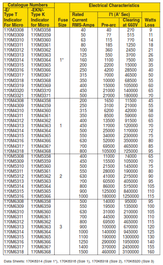 Volts: — 1000Vac (20-250A), — 900Vac (315A)